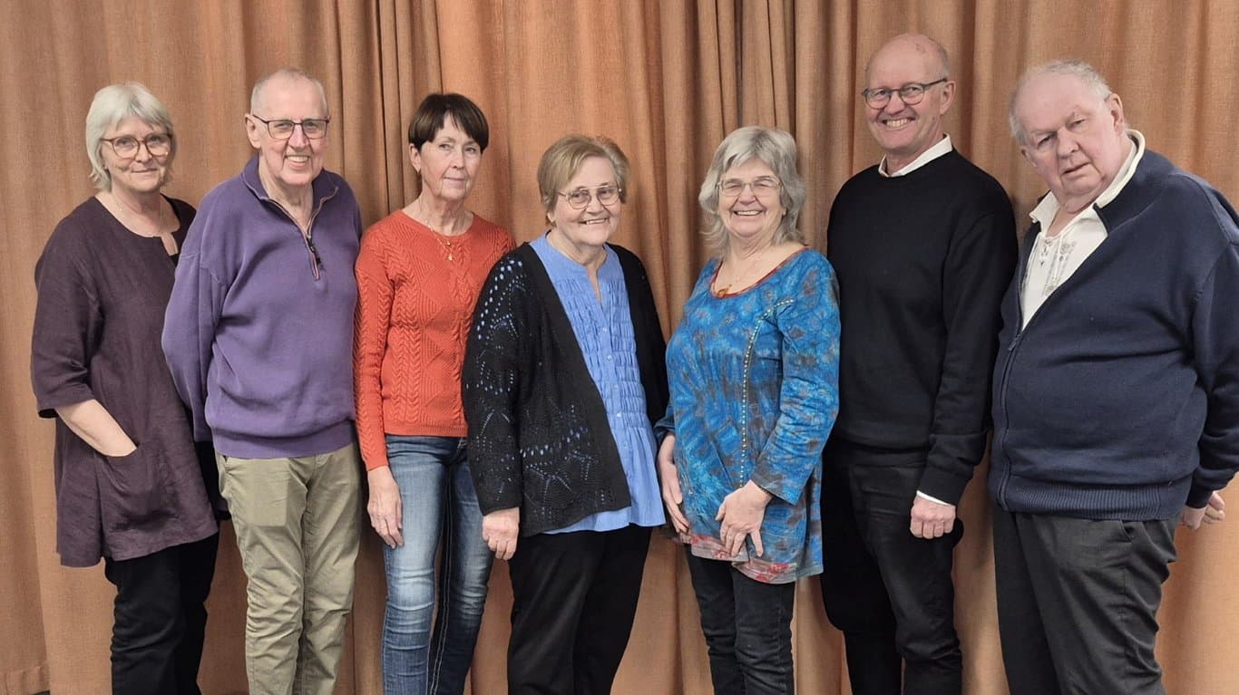 Styrelsen 2026 fr vänster, ledamot Bodil Johansson, ledamot Arne Fredman, kassör Iréne Dahlberg Johansson, ny ordförande Gun Engström, sekreterare Anne Petrusdotter, ledamot och vice ordförenade Dag-Erik Karlsson samt ledamot Nils-Erik "Nisse" Johansson